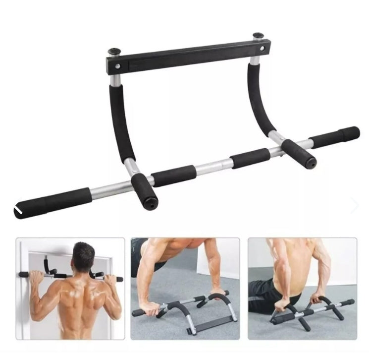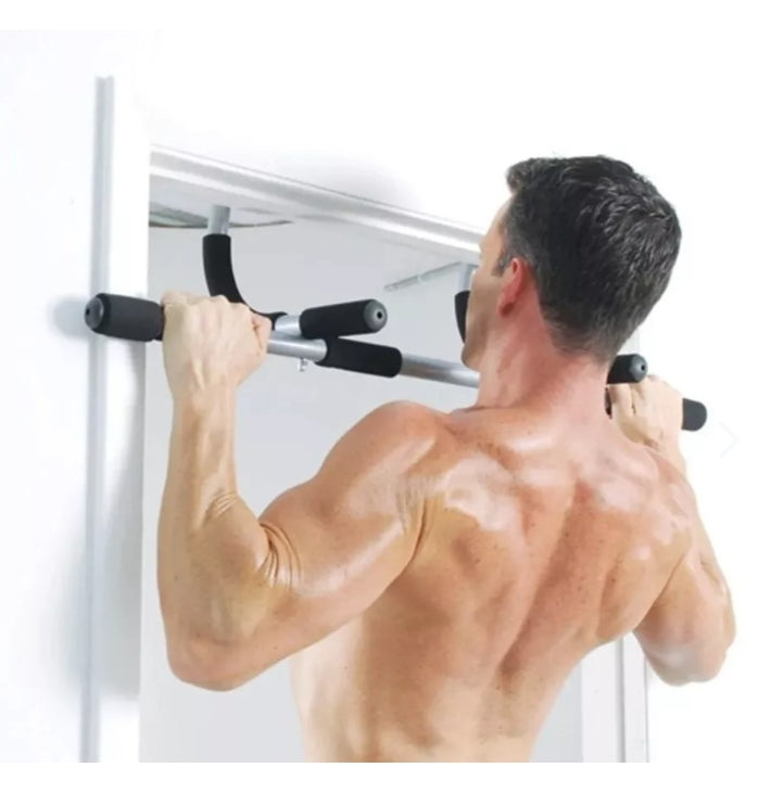 Entrena fuerza real sin salir de casa con la Barra de Ejercicios Multifuncional para Puerta (Door Gym). Un equipo versátil que te permite trabajar pecho, brazos, espalda, hombros y abdomen con una sola herramienta. Realiza pull-ups, push-ups, fondos, remos con peso corporal y abdominales colgantes para construir músculo, quemar calorías y definir tu cuerpo.